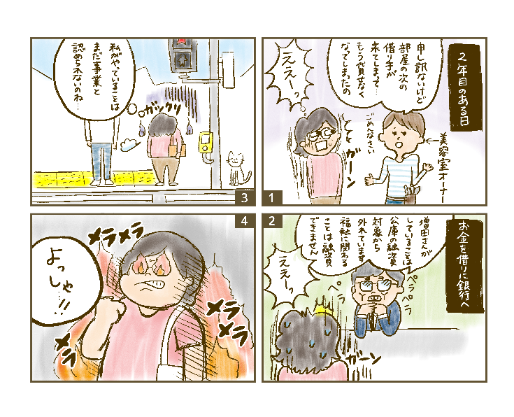 度重なる試練にも負けず、いつか事業と認められるようにゼッタイ頑張ろう!と心に誓いました。その頃、とある働くママとの出会いから、24時間対応できる保育システムを目指すことにしました。何とか融資してくれる銀行と物件の目処が立ったものの、さらに大きな壁が。一緒にやってきた友人たちから「これ以上は一緒にできない」と告げられたのです。理由は、主婦の域を脱するから。