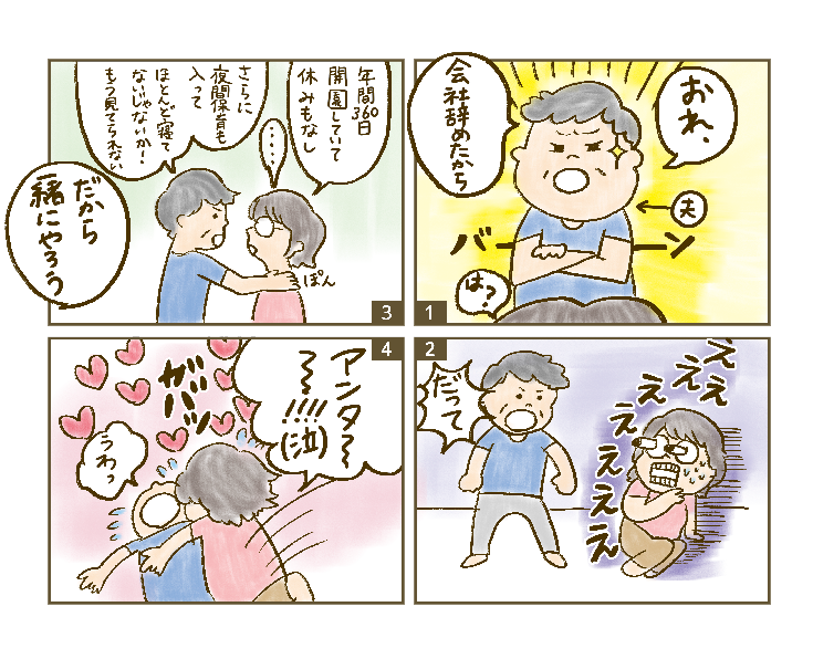 新しくできた「キッズパオ」に少しずつ入園希望者が増え始めた頃、私は睡眠もあまりとれずに働き通しでした。そんなある日突然、フラフラの私を見かねた夫が「もう見てられん!」と、なんと会社を退職!そこから、夫婦の二人三脚が始まりました。