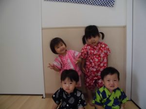 医療法人柏葉会 柏戸病院 院内保育所ブログ 2020.07.30 夏祭り☆ 甚平を着て、保育所で夏祭りごっこをしました! ヨーヨーすくい、ボウリング、わなげを楽しみ、 最後はでんでん太鼓のプレゼントで大喜びでした❤ 過去のブログ 2020.07.30おにはどこ? 2020.07.30虫の声はどんなだったかな~? 2020.07.30☆プール遊び 2020.07.30すいか割り!! 2020.07.30夏祭り☆ 2020.07.30笹の葉さらさら♪ 2020.07.30風船マット☆ 2020.07.30☆虫の声を聴く会☆