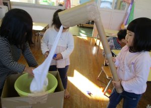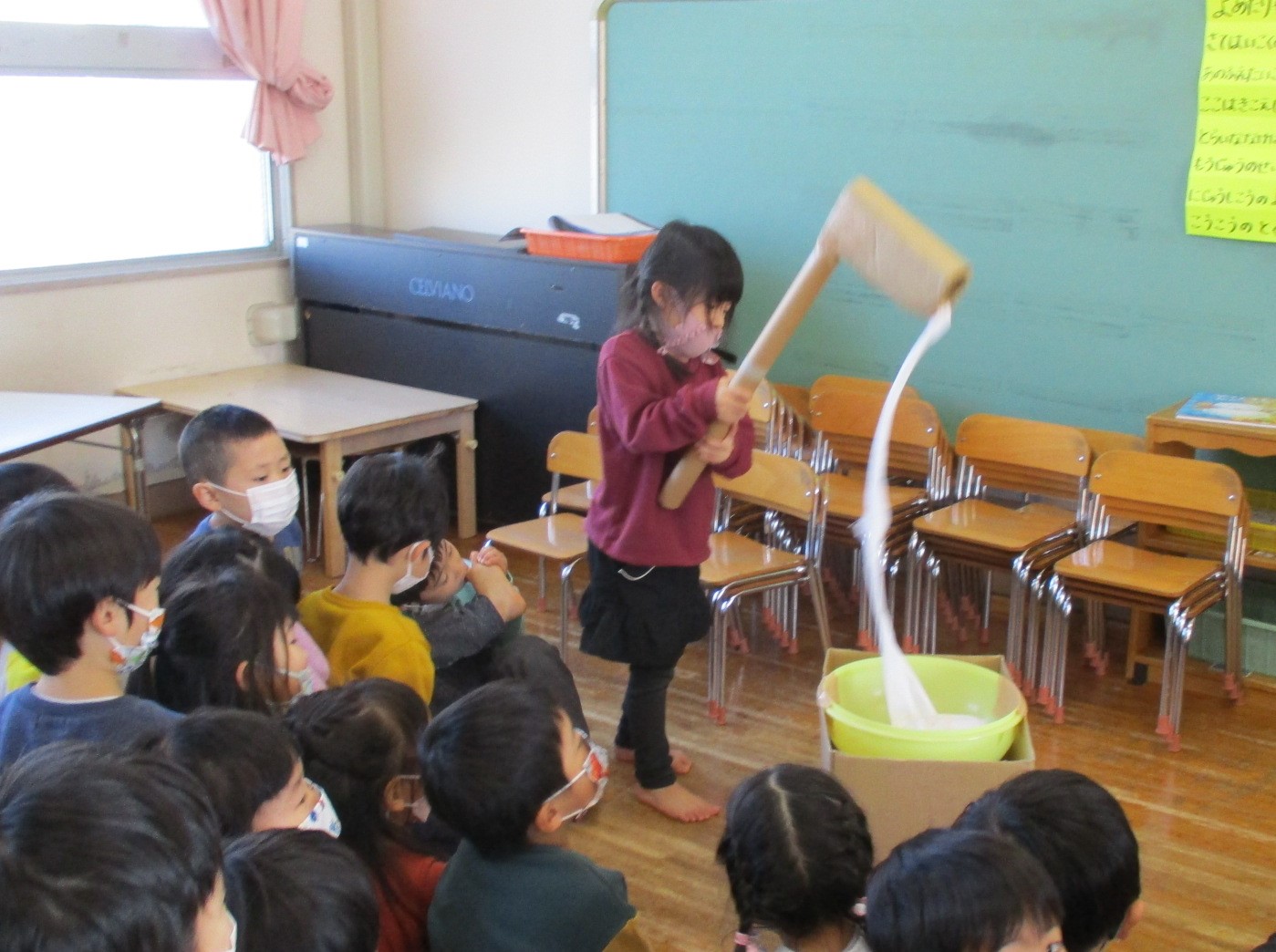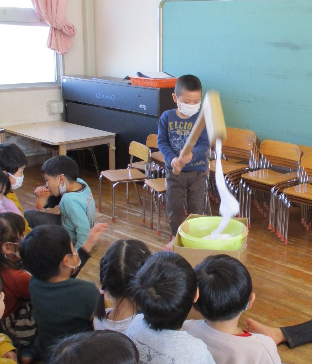 「おもちが のびてる~!!」と歓声。
