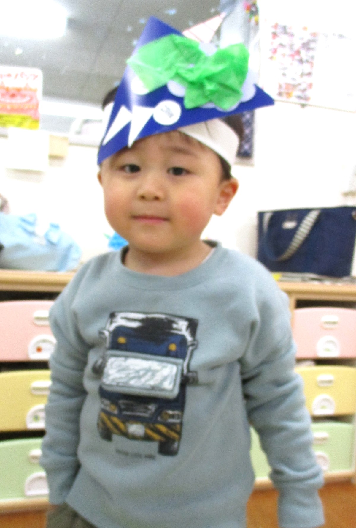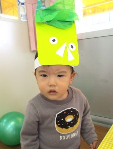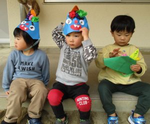 手づくりの鬼の帽子、かわいいですね。