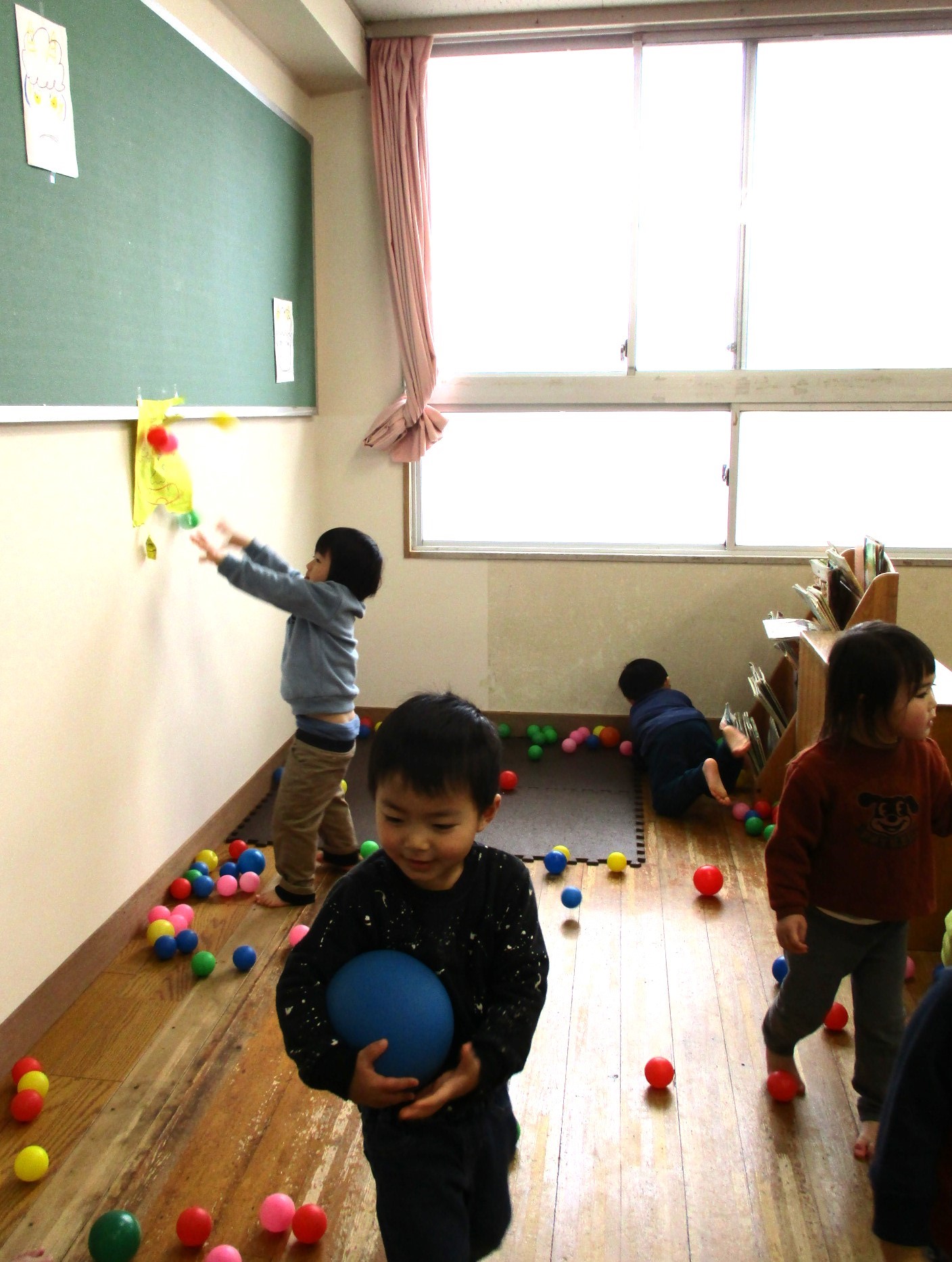 大きい子たちは、玉入れゲームで盛り上がっていました。