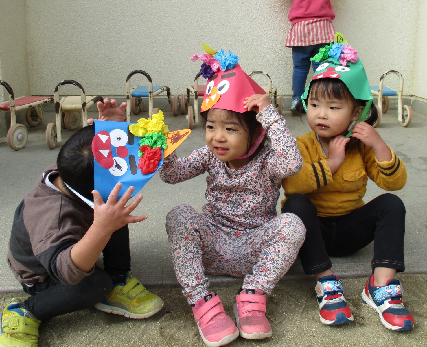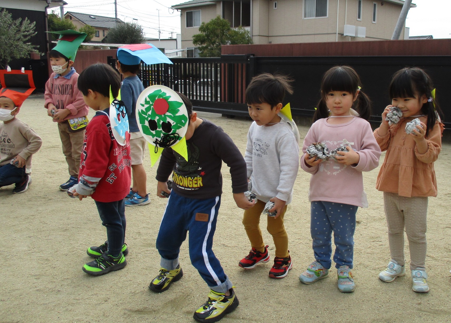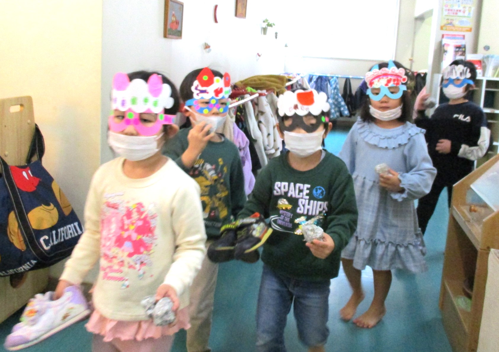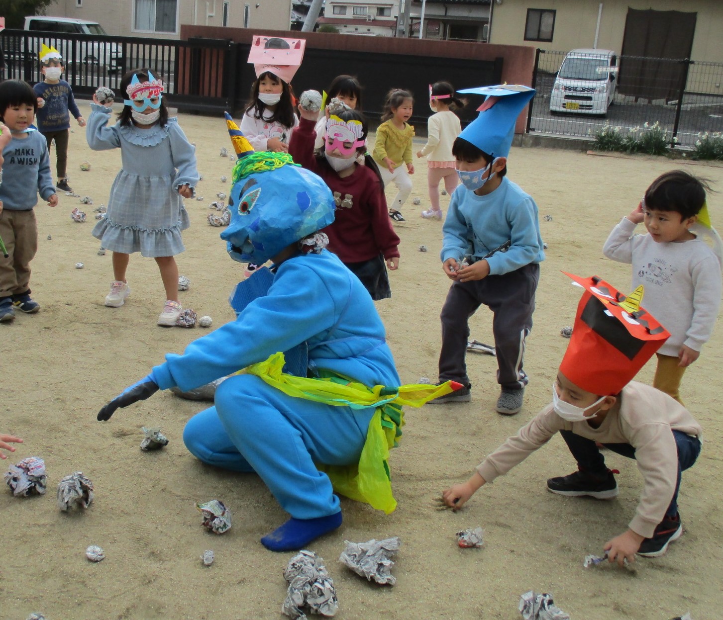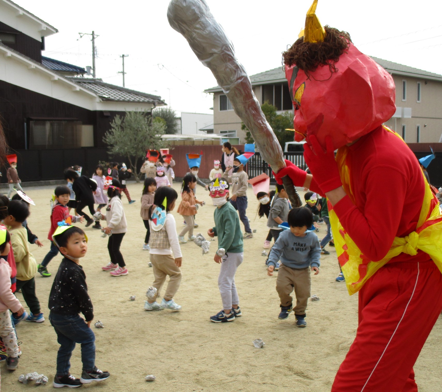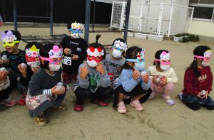小さい子たちは、お面をかぶって、鬼になりきって遊んでいました。